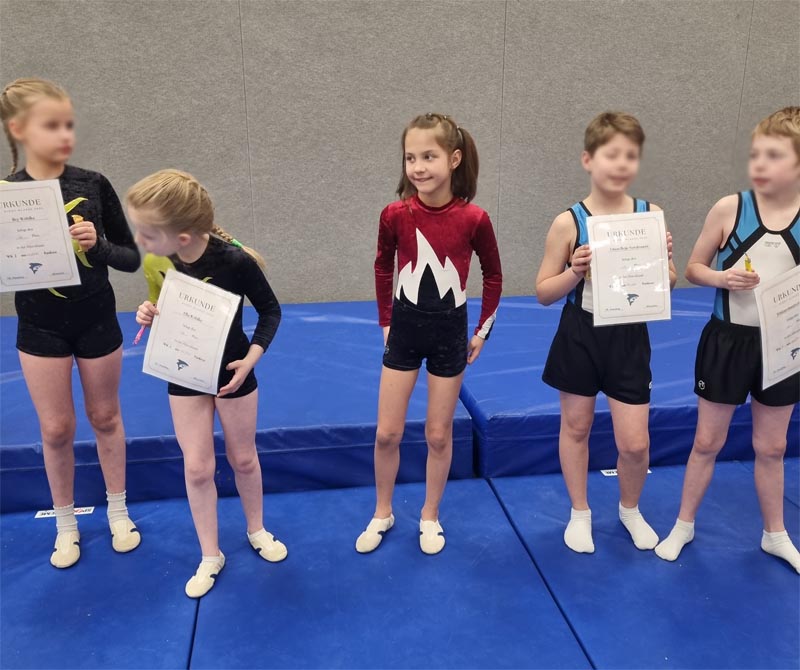In der Wettkampfklasse 4 (9 Teilnehmer) dominerten Malina Kruse und Aaron Jacobs diese Klasse und zeigten die schwersten und saubersten Übungen und so freute sich Malina Kruse über den 1. Platz und Aaron Jacobs über den 2. Platz.